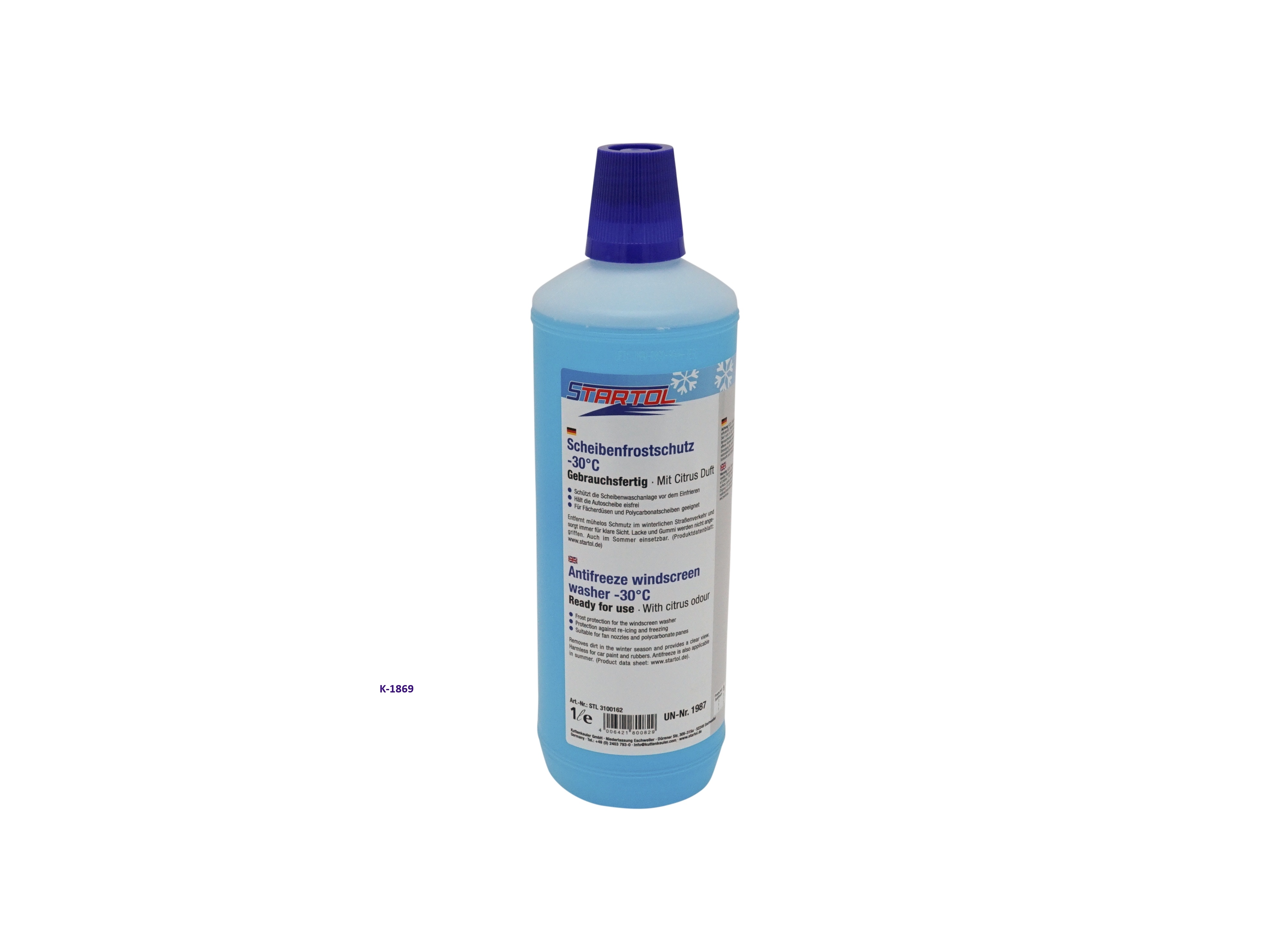 Ein auf Alkoholen basierender Scheibenwaschzusatz mit Frostschutz und Reinigungskomponenten. Bewirkt in Abhängigkeit von der Menge des Zusatzes eine Absenkung des Gefrierpunktes der Waschflüssigkeit. Das Einfrieren der Scheibenwaschanlage wird verhindert, beste Verträglichkeit und Korrosionsschutz für alle Bauteile. Methanolfrei, Lacke und Gummi werden nicht angegriffen.